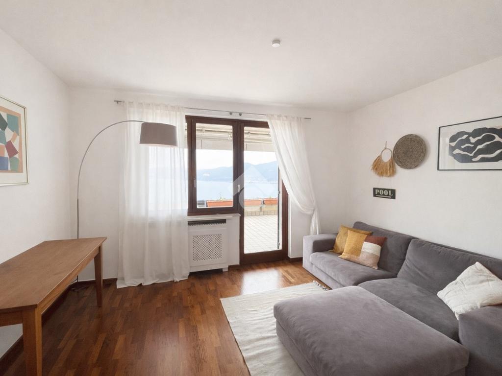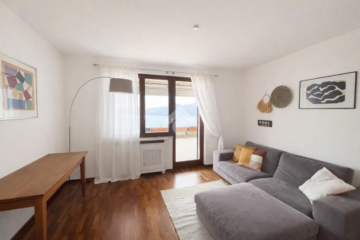 L’appartamento si distingue per la luminosità e la funzionalità degli spazi: ampio soggiorno con cucina a vista e accesso diretto alla terrazza con meravigliosa vista lago, camera matrimoniale, camera doppia e bagno finestrato con doccia.